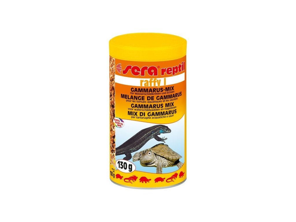 Sera Raffy I je čistě přírodní pochoutka. Pečlivě namíchaná směs malých přírodních krmných živočichů (blešivců, ančoviček a krevetek) nabízí ideální přírodní potravu pro masožravé plazy a obojživelníky (např. vodní želvy, axolotly). Krmivo je bohaté na přírodní minerální látky a balastní látky. Obsahuje více než 4 % vápníku a také bílkoviny, omega mastné kyseliny, karotenoidy, minerální látky a stopové prvky. Toto složení přirozeně reguluje trávení a zároveň podporuje vývoj a odolnost proti nemocem. Základ pro zdravý vývoj kostí a krunýřů. Je skvělým přídavkem ke krmivům Sera Raffy P, Sera raffy Mineral a Sera reptil Professional Carnivor.