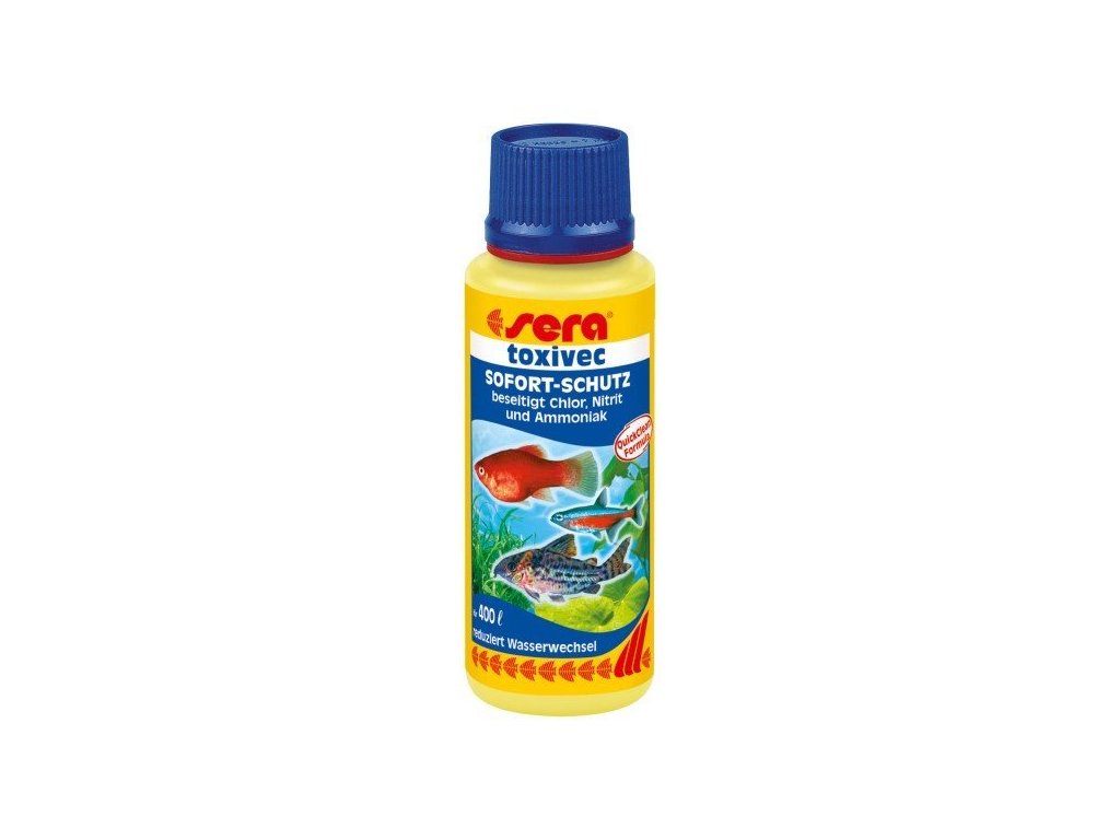Sera Toxivec ihned odstraňuje z akvarijní vody nebezpečné látky pro okrasné ryby, jako jsou nitrit, amonium/amoniak, chlór a chloramin. Váže těžké kovy jako je olovo a měď a snižuje obsah nitrátu a tím i růst řas. Zbytky přípravku se sami rozloží. Používá se jako první pomoc při destabilizačních faktorech, jako jsou nově příchozí ryby, překrmení nebo nasazení léčiv. Díky přípravku Sera Toxivec jsou nově přidané ryby okamžitě chráněny, je snížen růst řas, výměna vody je méně častá. Vytváří ideální prostředí pro čisticí bakterie z přípravku Sera Bio Nitrivec.