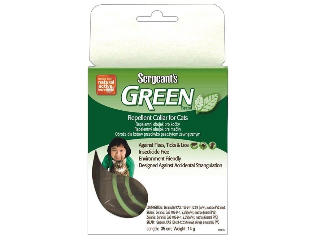 Sergeant’s přírodní antiparazitní obojek pro kočky. Rychlý a dlouhodobý účinek proti blechám a klíšťatům na 4 měsíce díky inovativní přírodní substanci. Obojek má svěží vůni a světle zelenou barvu.
