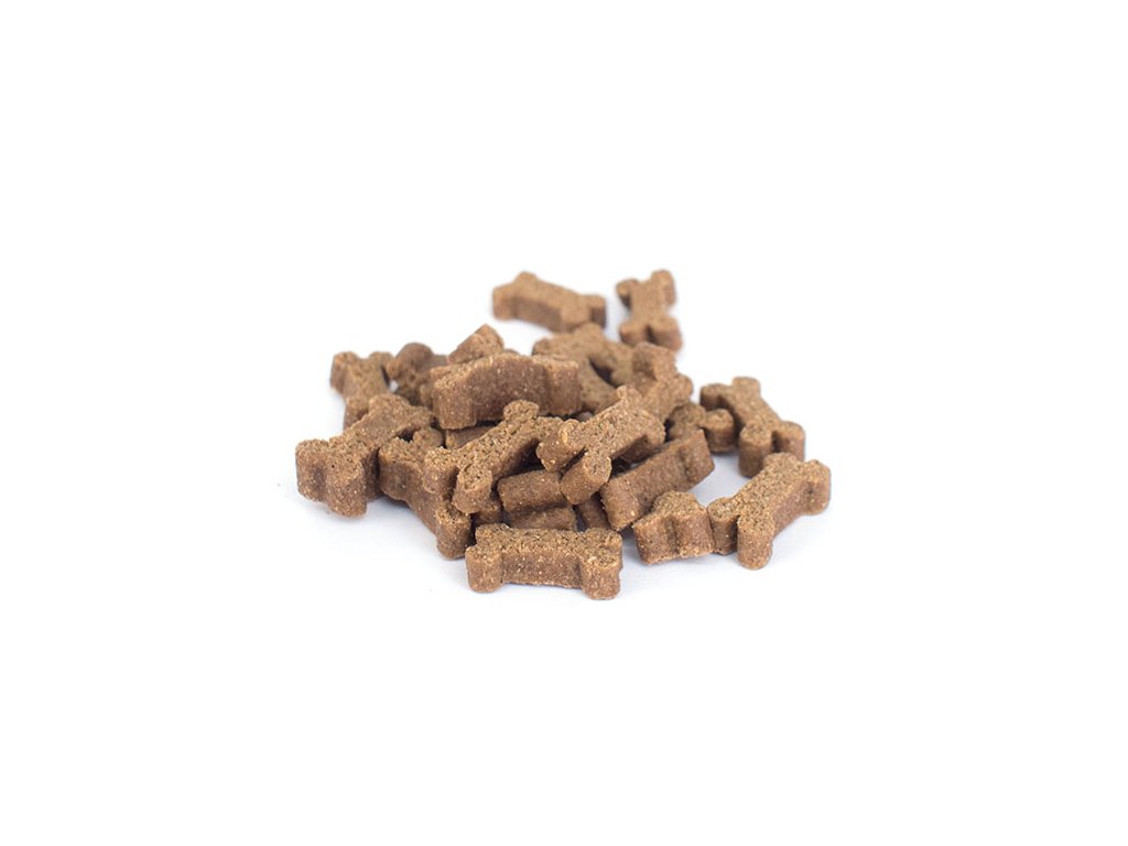Lahodný pamlsek pro psy ve tvaru malých kostiček s játry a rýží. Obsahuje 70 % čerstvého masa.