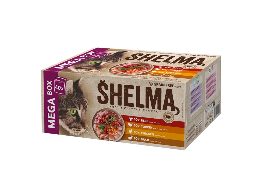 Shelma Cat kuřecí hovězí kachní a krůtí 40 x 85 g