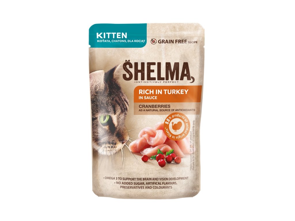 Superprémiové kompletní krmivo pro koťata bohaté na krůtí maso v omáčce.