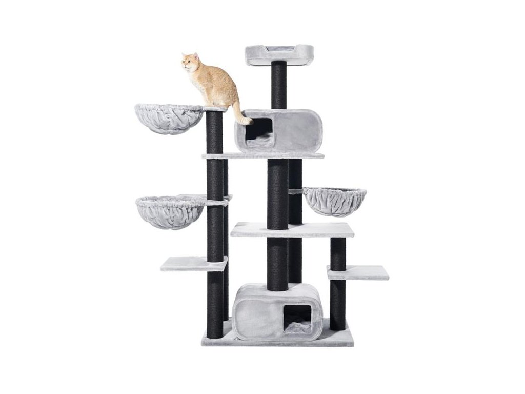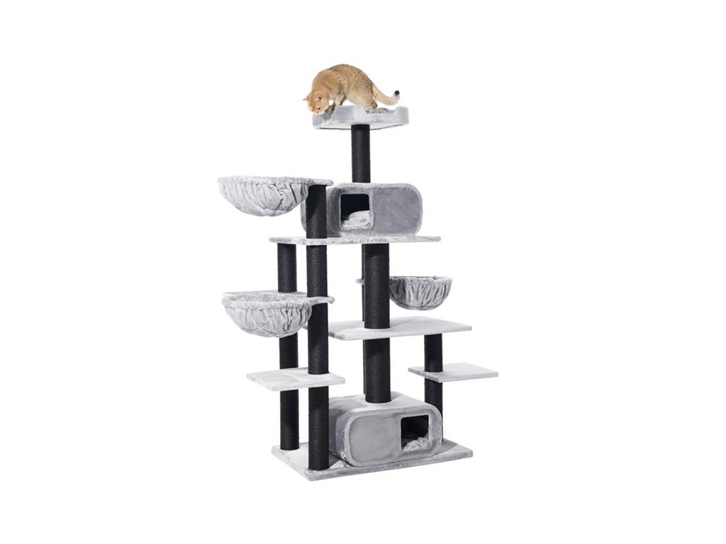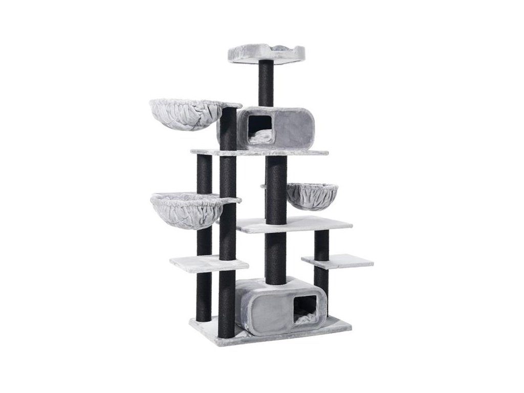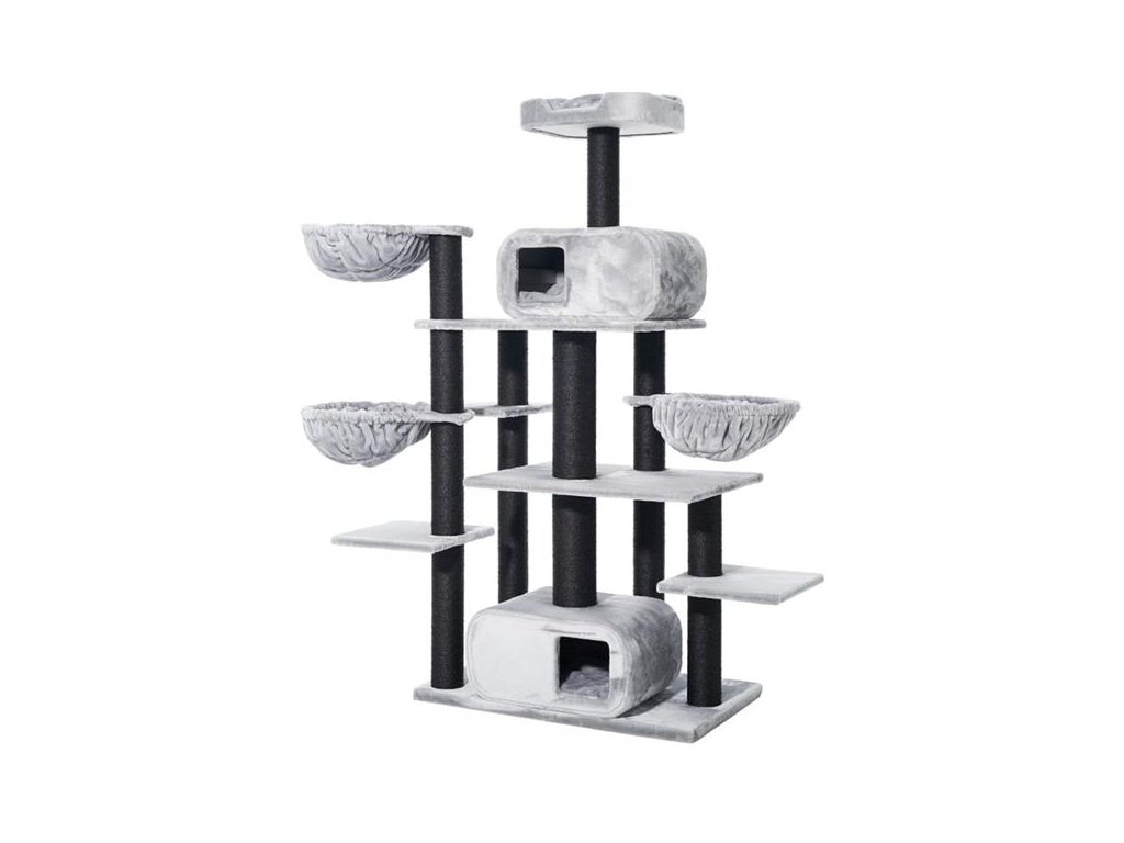 Objevte stylový škrabadlo pro kočky „TODOR“ – ideální domov pro hraní, škrábání a relaxaci vaší kočky! S elegantním šedým měkkým plyšovým potahem vás zve k mazlení a relaxaci. Robustní sisalové škrabadlo (Ø 11 + 15 cm) nabízí vaší kočce ideální příležitost k broušení drápků a procvičování svalů. S plochou základny 98 x 58 cm a výškou 201 cm nabízí „TODOR“ řadu možností hry a úkrytu. Tento škrabadlo pro kočky, vybavené dvěma velkými doupěti, třemi útulnými dutinami a četnými odpočinkovými plochami, je skutečným rájem pro vašeho chlupatého přítele. Funkční, stylový a pohodlný – ideální místo pro šťastné kočičí chvíle!