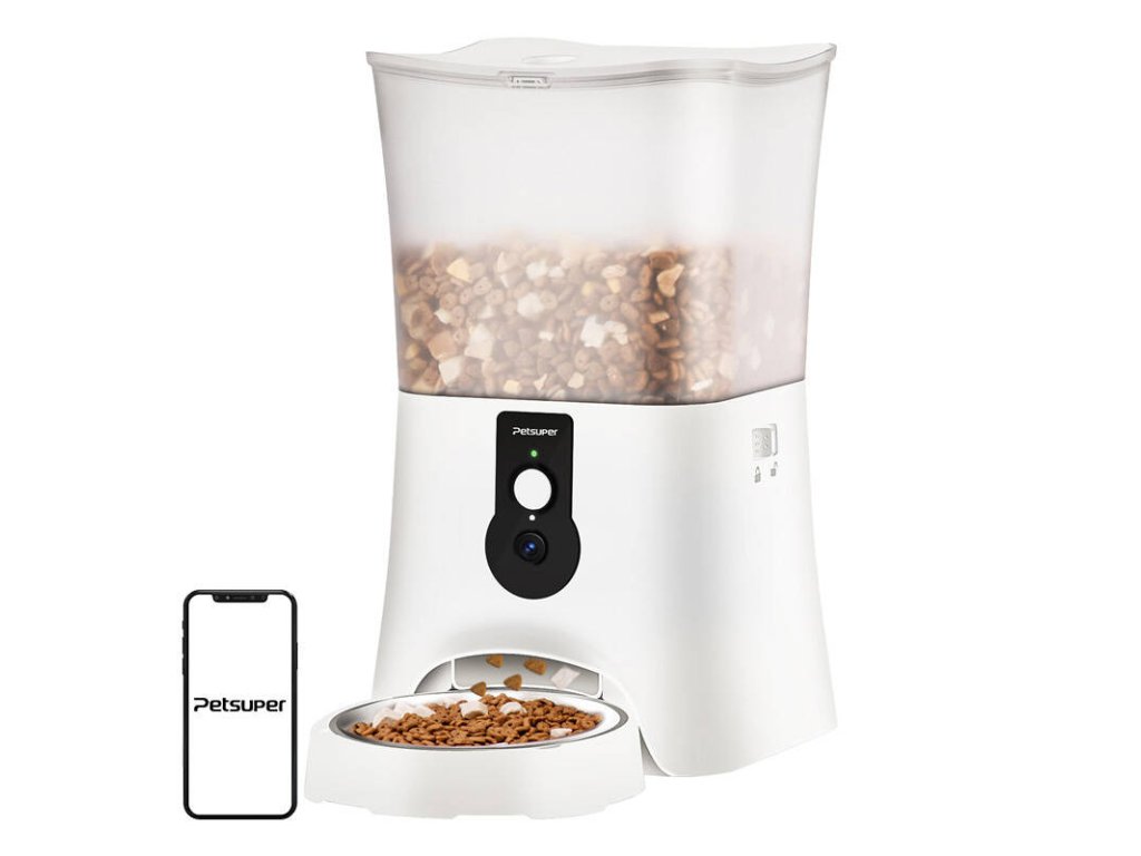 Petsuper PF01-2 WiFi 5l chytrý dávkovač krmiva s kamerou (bílý).