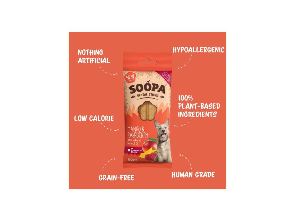 Soopa Pets Dentální tyčinky Soopa s mangem a malinou 100 g