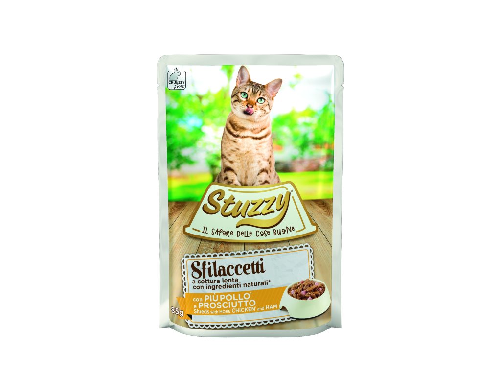 Vlhké krmivo pro kočky s rybí příchutí je speciálně připravováno v páře. Italské kapsičky Stuzzy zachutnají i té nejmlsnější kočičce. Složení kapsičky je speciálně upraveno tak, aby splňovalo výživové požadavky dospělých koček. Kapsičky označené jako Sfilaccetti obsahují pouze pomalu vařené přírodní ingredience a jsou bohaté na chuť a živiny (jedinečný zážitek skutečné chuti).