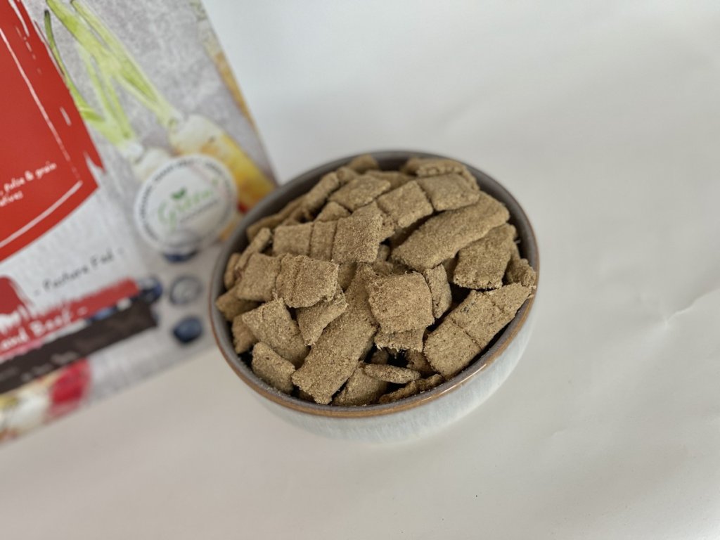 Poctivé krmivo z kvalitních surovin, plné živin v každém soustu! Vyrobeno 100% z kvalitního masa, vnitřností, zeleniny a ovoce. Všechny naše receptury staví na jednoduchých, čerstvých a poctivých surovinách, které jsou od přírody bohaté na živiny i chuť. Naše ingredience přirozeně poskytují téměř všechny živiny potřebné k tomu, aby váš pes dobře prospíval, podávané ve vysoce biodostupné formě zaručené šetrným pečením. Nepřidáváme do krmiva nic zbytečného, ani z něj neodstraňujeme nic důležitého. Minimální míra zpracování zaručuje více chuti i živin.Stačí tři kroky a vytvoříte opravdu dobré krmivo, stejně jako při domácí výrobě.