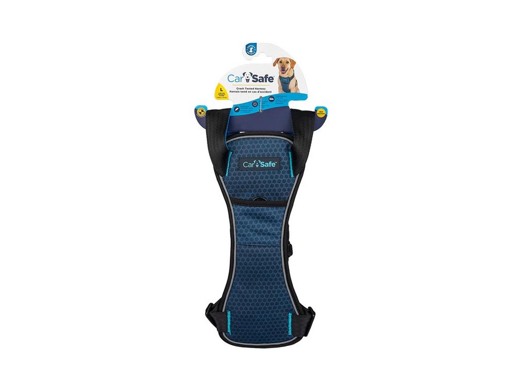 CarSafe Crash Tested Harness od společnosti Company of Animals je ultrapevný a lehký postroj pro psy prověřený při nárazových testech bezpečnosti motorových vozidel a certifikovaný do hmotnosti psa 32 kg. Má dvojí funkci – lze jej použít spolu s bezpečnostním pásem jako přepravní zádržný systém v autě i jako postroj k venčení psa. Je nejen bezpečný, ale také velmi pohodlný. Je vyrobený z kvalitního, pevného, a přesto lehkého materiálu s polstrovaným hrudním i hřbetním dílem opatřeným prodyšnou síťovinou. Speciální reflexní tkanina pak zajišťuje dobrou viditelnost psa v případě potřeby. Postroj je v horní části vybaven madlem, kterým lze protáhnout autopás a připoutat tak vašeho psa k zadnímu sedadlu. D-kroužky v hřbetní a hrudní části zase slouží pro připnutí vodítka v případě, kdy pes potřebuje opustit vozidlo. Díky přezkám na bocích postroj snadno a rychle nasadíte i svléknete, aniž by zvíře muselo zvedat tlapky, a pomocí plastových průvleků nastavíte potřebnou délku popruhu.
