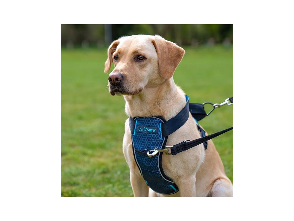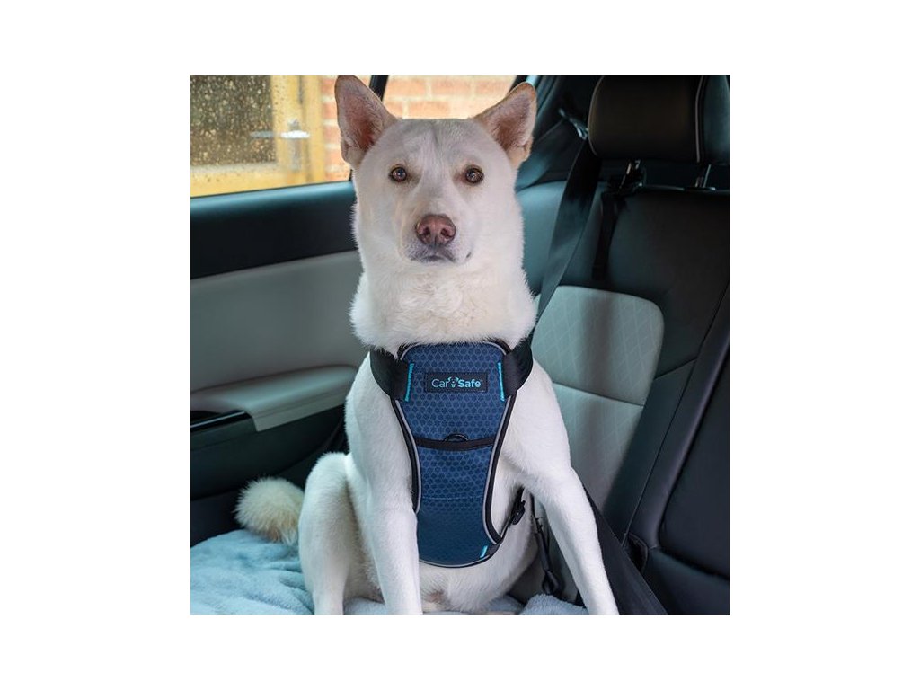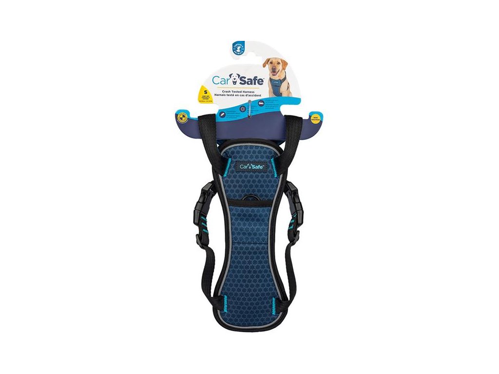CarSafe Crash Tested Harness od společnosti Company of Animals je ultrapevný a lehký postroj pro psy prověřený při nárazových testech bezpečnosti motorových vozidel a certifikovaný do hmotnosti psa 32 kg. Má dvojí funkci – lze jej použít spolu s bezpečnostním pásem jako přepravní zádržný systém v autě i jako postroj k venčení psa. Je nejen bezpečný, ale také velmi pohodlný. Je vyrobený z kvalitního, pevného, a přesto lehkého materiálu s polstrovaným hrudním i hřbetním dílem opatřeným prodyšnou síťovinou. Speciální reflexní tkanina pak zajišťuje dobrou viditelnost psa v případě potřeby. Postroj je v horní části vybaven madlem, kterým lze protáhnout autopás a připoutat tak vašeho psa k zadnímu sedadlu. D-kroužky v hřbetní a hrudní části zase slouží pro připnutí vodítka v případě, kdy pes potřebuje opustit vozidlo. Díky přezkám na bocích postroj snadno a rychle nasadíte i svléknete, aniž by zvíře muselo zvedat tlapky, a pomocí plastových průvleků nastavíte potřebnou délku popruhu.