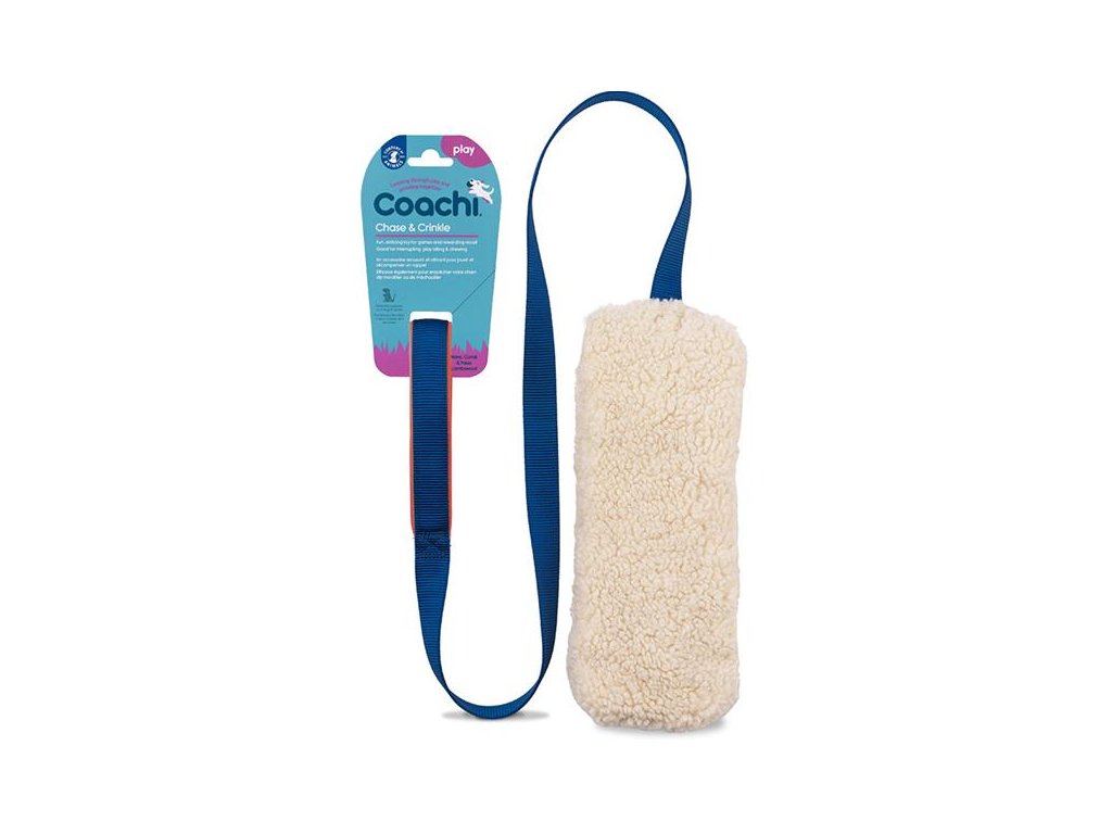 Hračka Coachi Chase & Crinkle je šustivý pešek s rukojetí určený pro štěňata a dospělé psy, kteří se rádi honí za kořistí. Je vyroben z umělé ovčí vlny, příjemné na kousání a šetrné k zubům i dásním. Dlouhá polstrovaná rukojeť usnadňuje manipulaci s hračkou a šustivé zvuky podněcují zájem a aktivitu psa. Hračku lze nejlépe využít jako motivaci nebo odměnu při trénování poslušnosti, agility, při nácviku odložení, odvolání apod. Je ideální pomůckou k upoutání pozornosti psa, chcete-li jej například odnaučit nežádoucímu chování nebo zlepšit jeho přivolání.
