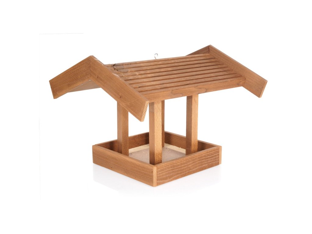 Dřevěné krmítko pro venkovní ptactvo.