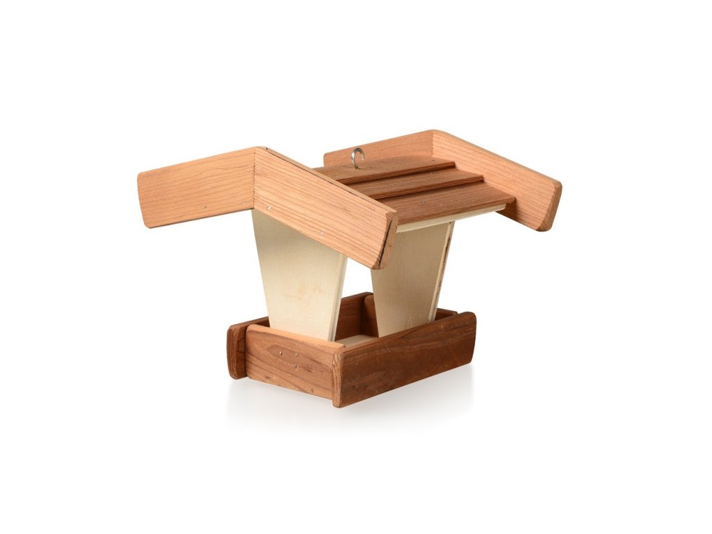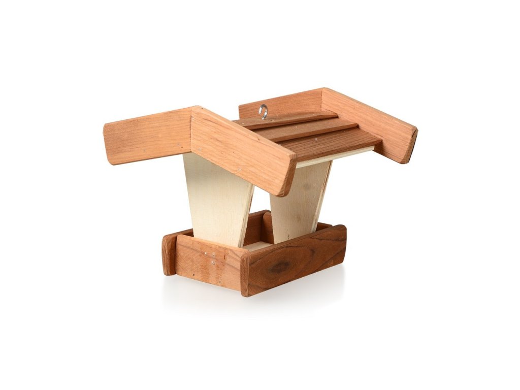 Praktické dřevěné krmítko, které je určeno pro venkovní ptactvo.