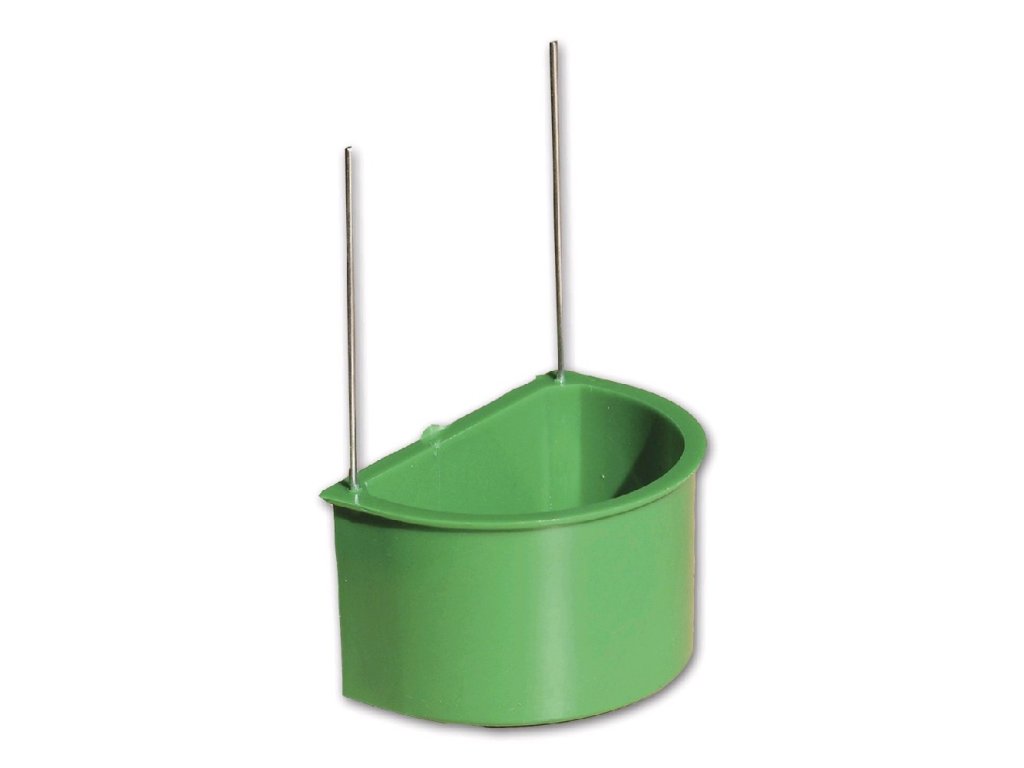 Plastové půlkulaté krmítko pro exoty s kovovými háčky.