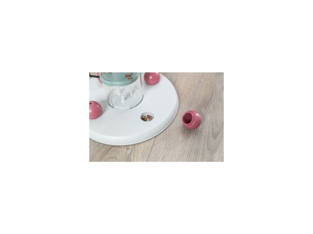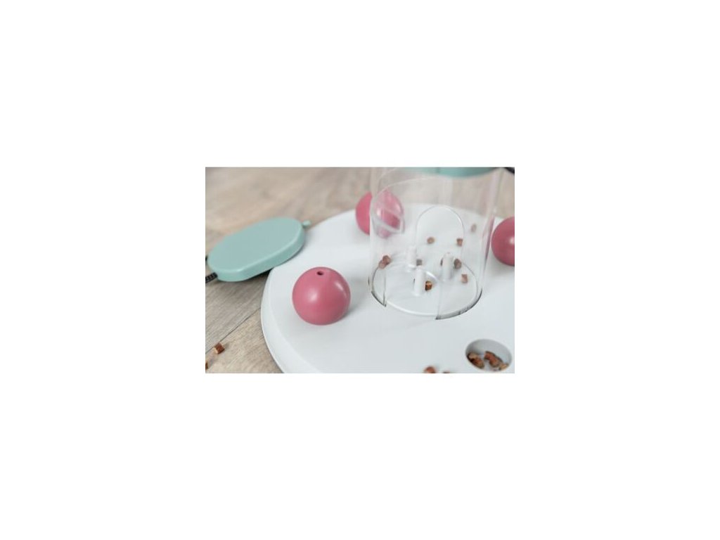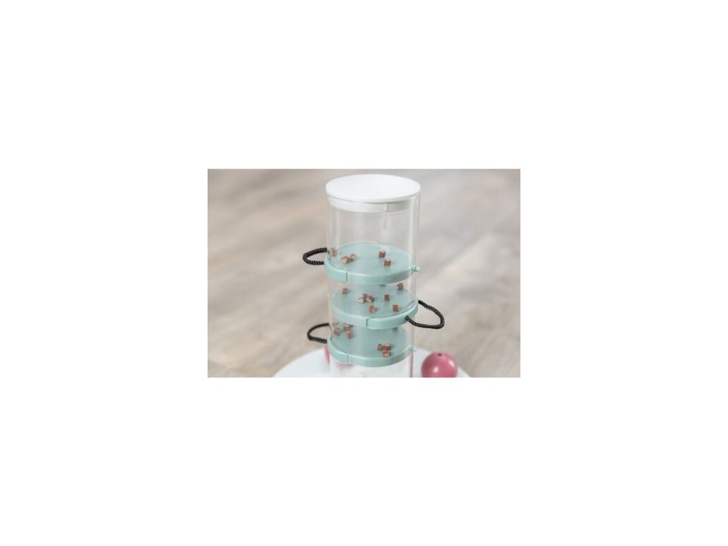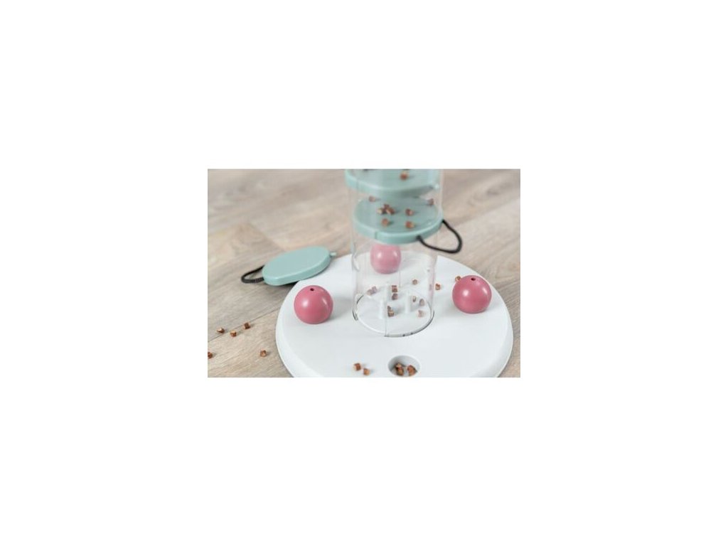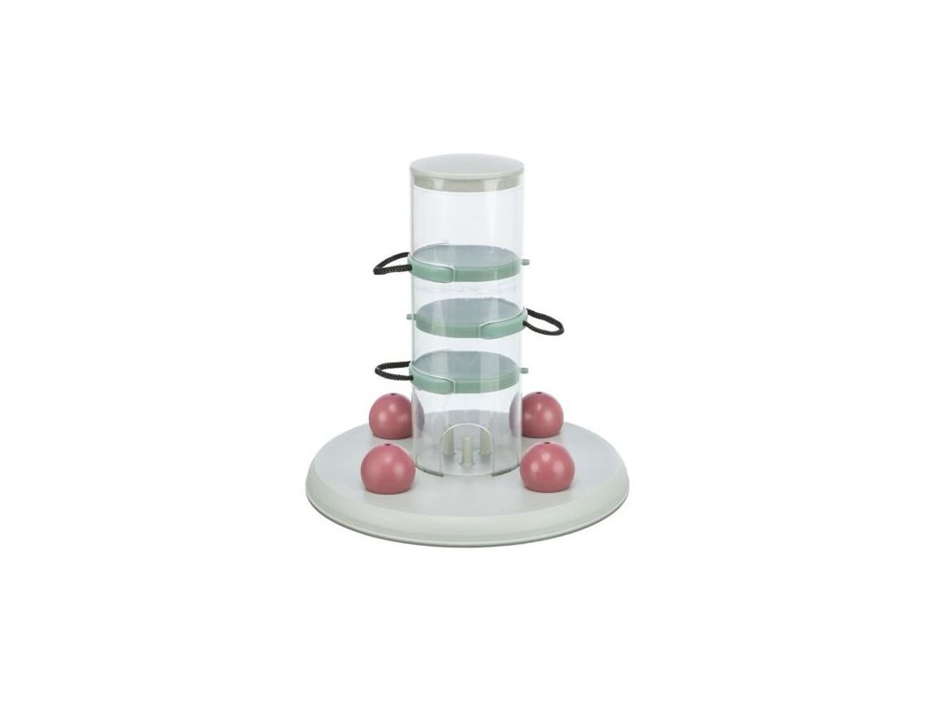 Herní věž pro kočky nabízí tři výsuvná patra a čtyři kužely, které zajišťují zábavnou a chytrou hru podporující přemýšlení. Díky gumovým nožičkám je věž stabilní a kuličky lze snadno umýt v myčce na nádobí.