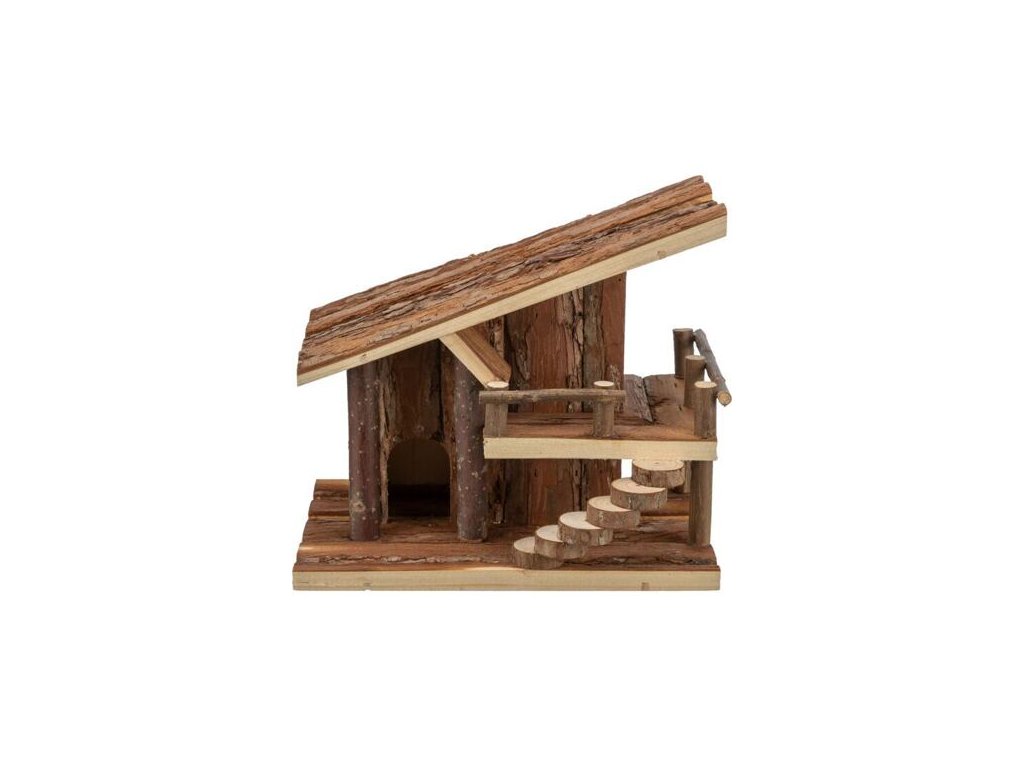 Trixie Chaloupka JULE s terasou pro myšky 25 x 21 x18 cm přírodní dřevo s kůrou