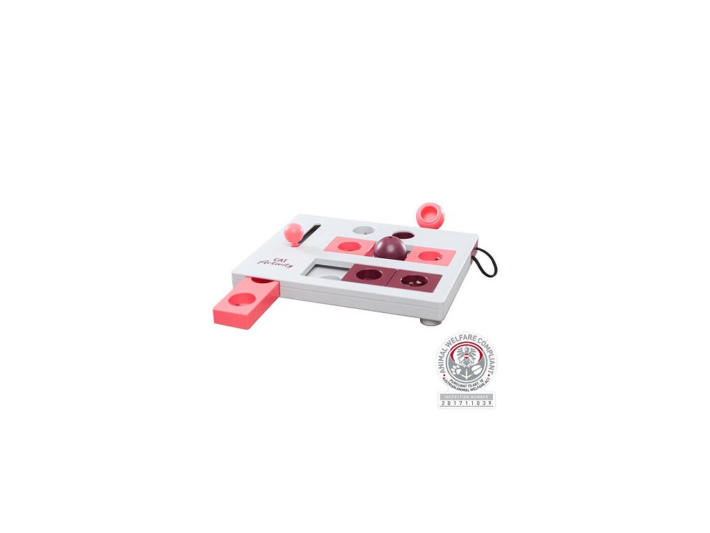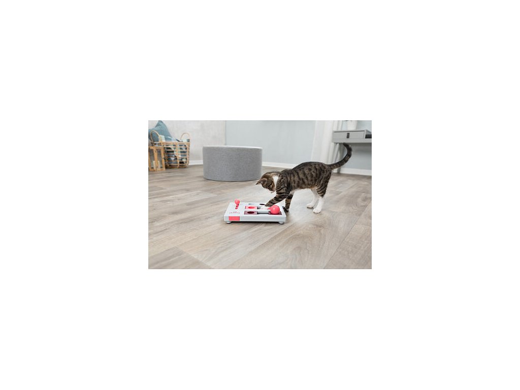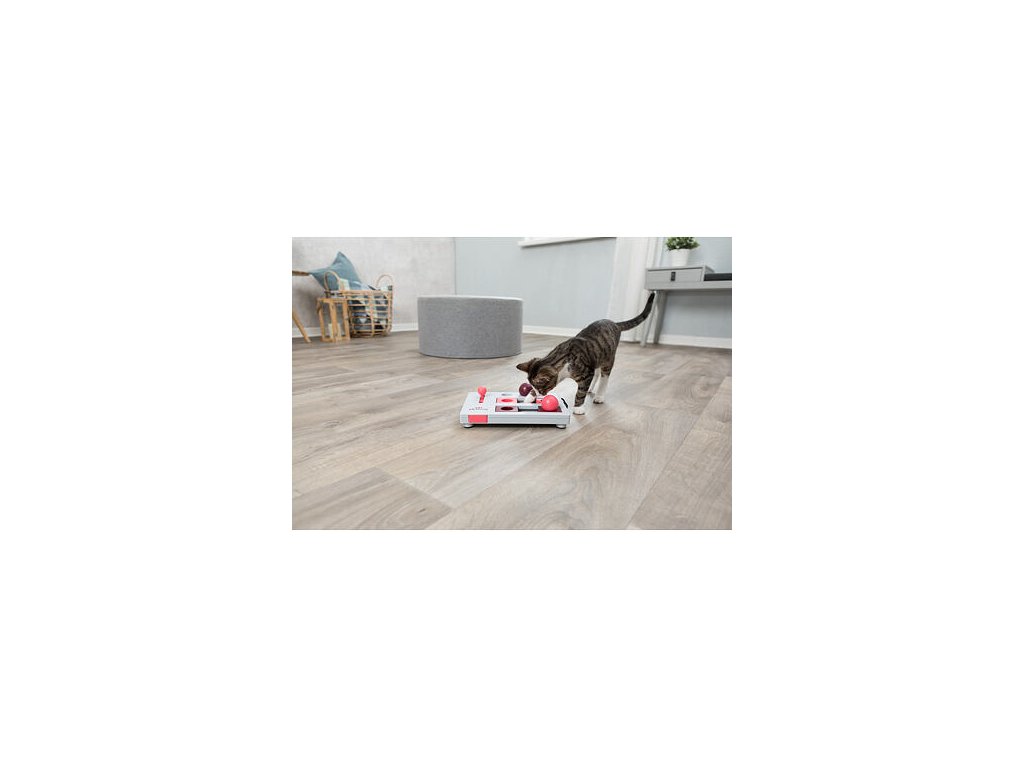 hra zaměstná kočku fyzicky a nutí ji přemýšlet, jak se k pamlskům dostat