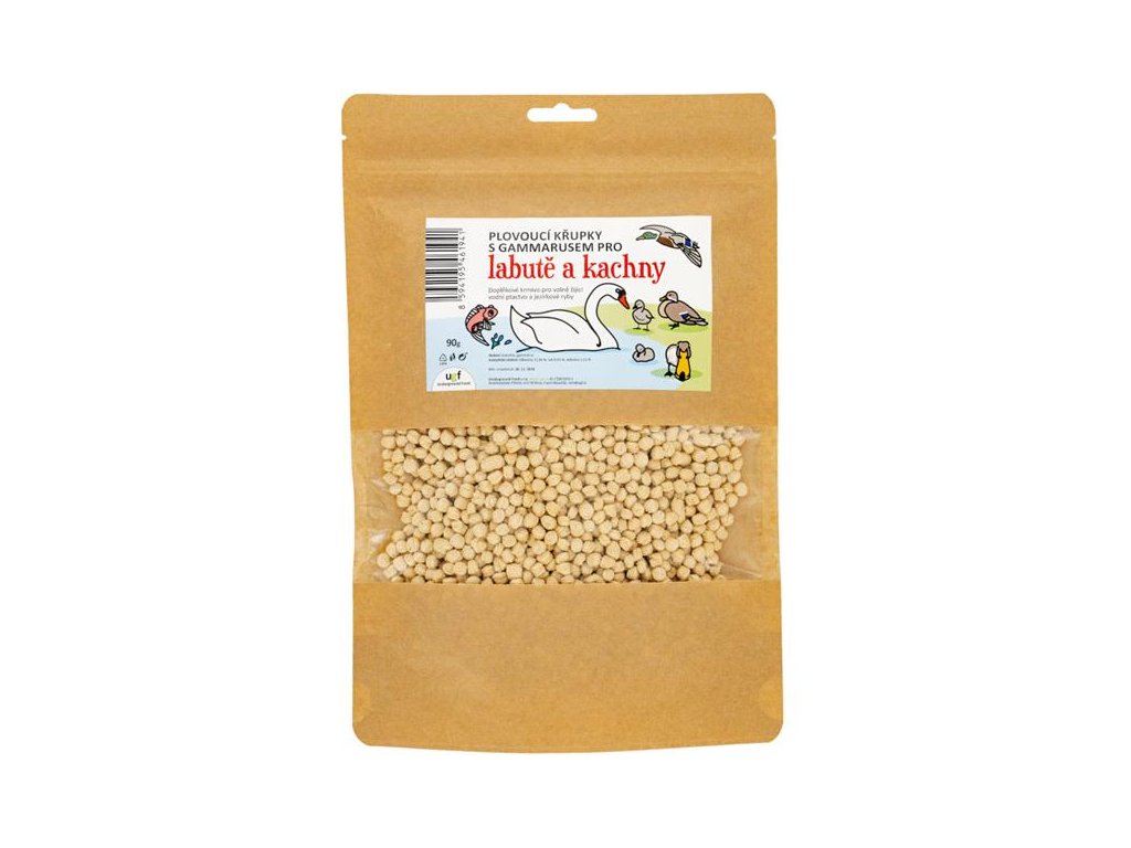 Extrudované plovoucí křupky jsou čistě přírodním doplňkem krmiva pro volně žijící vodní ptactvo, jako jsou kachny a labutě, a pro jezírkové ryby, např. koi kapry. Křupky o velikosti cca 0,5 cm obsahující pouze kukuřici a gammarus jsou bohatým zdrojem minerálních látek a bílkovin. Neobsahují barviva ani konzervanty.Díky praktickému znovuuzavíratelnému sáčku se produkt dobře skladuje a dlouho si zachová nejvyšší kvalitu.