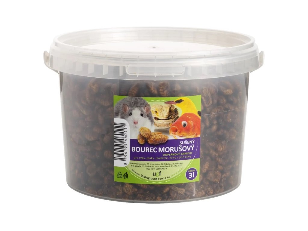 Larvy bource morušového jsou vhodným doplňkem stravy zejména pro kapry KOI, kterým dodají potřebnou energii, podpoří rovnoměrný růst a zbarvení. Dále je vhodný pro hmyzožravé ptáky (exotické, volně žijící, drůbež), drobné savce (potkany, krysy, křečky, ježky, veverky), plazy, ale také pro psy a kočky.