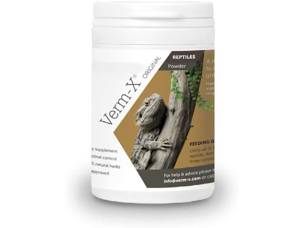Přírodní prášek proti střevním parazitům pro plazy je přírodní formulace, která nabízí účinné látky na podporu střevního zdraví během náročných období. Prášek se dobře drží na hmyzu a vegetace. Tahle účinná formulace pro plazy je nejen snadno krmitelná, ale i velmi chutná. Složení 10 speciálně vybraných bylin pomáhá podporovat zdraví a vitalitu všech plazů. Verm-X Přírodní prášek je vyroben ze 100% přírodních aktivních složek a může být krmen po celý rok. Používá se na každodenní ochranu proti střevním problémům a střevním parazitům.