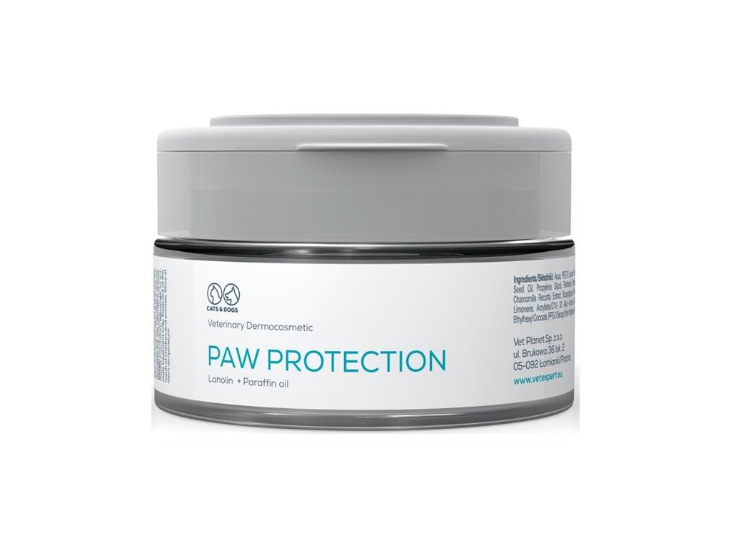 Složky obsažené v masti Paw Protection pečují o citlivé polštářky na tlapkách a chrání je díky kombinaci účinných složek: