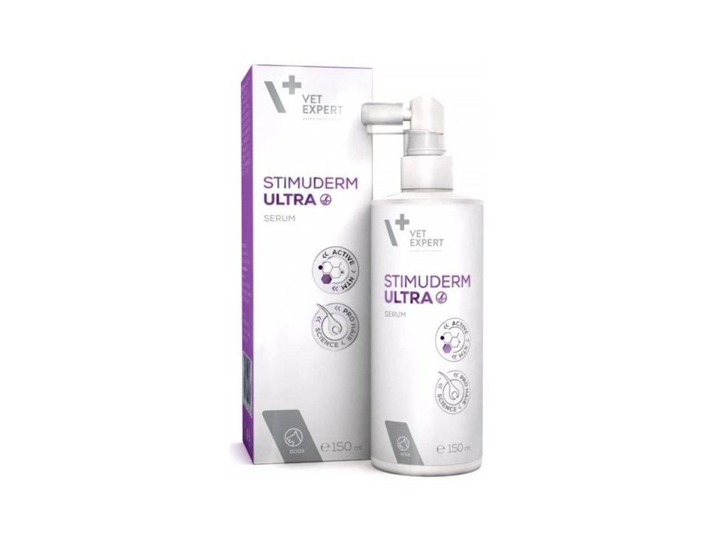 Sérum Stimuderm Ultra Serum je inovativní veterinární dermokosmetika určená k péči o kůži a srst psů s nadměrným vypadáváním srsti z různých příčin.Přípravek je založen na molekule ACTIVE NTM®, která stimuluje růst srsti a prodlužuje anagenní fázi. Složení doplňují látky zklidňující, hydratační, regenerační, zmírňující podráždění a zarudnutí.