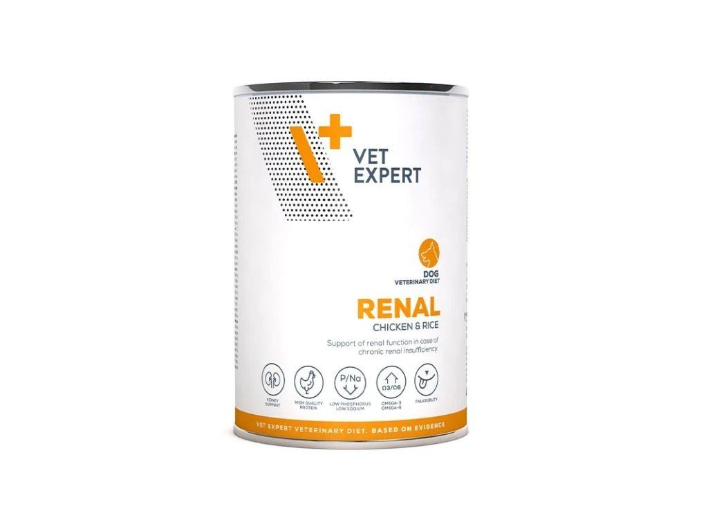 Kompletní a vyvážené dietní krmivo pro dospělé psy, určené k podpoře funkce ledvin v případě chronického selhání ledvin. Dietní krmivo RENAL DOG se vyznačuje sníženým obsahem bílkovin a sníženým obsahem sodíku a fosforu.