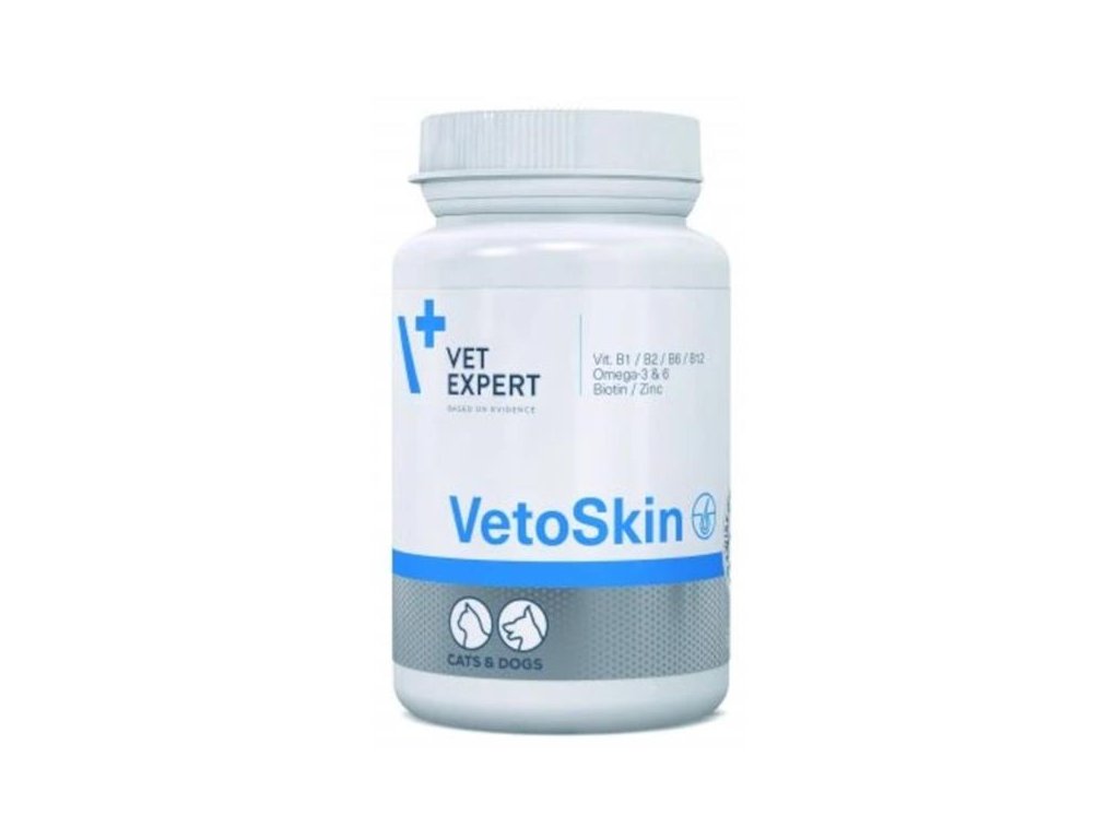 Doplněk stravy pro psy a kočky podporující správnou funkci kůže i v případě dermatologických poruch, jako jsou suchá, šupinatá kůže, nadměrná tvorba mazu nebo suchá, matná a lámavá srst. Díky pečlivě vybraným složkám pomáhá zlepšovat stav pokožky, což se přímo promítá do lepší kvality srsti.VetoSkin obsahuje složky, které podporují správné fungování kůže a srsti.Polynenasycené mastné kyseliny jsou stavebními kameny pokožky.