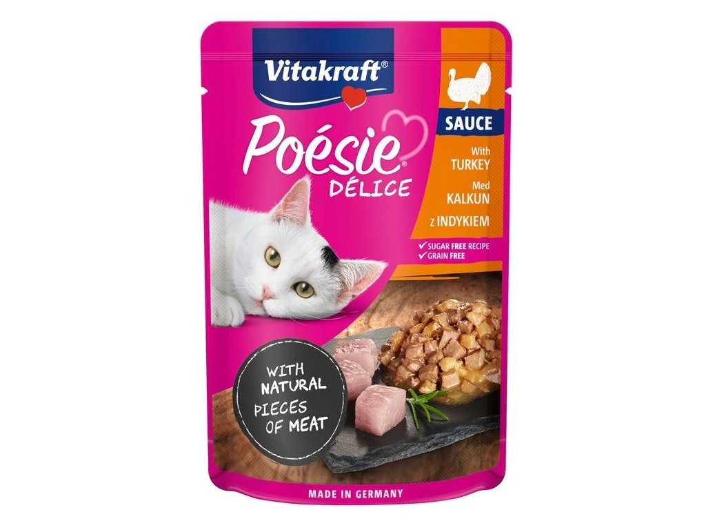 Poésie® Délice zaručuje nejvyšší kvalitu a prvotřídní ingredience. Nutričně přizpůsobeno potřebám koček. Receptura bez cukru a obilovin.