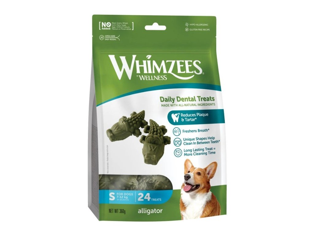 Dentální pamlsek WHIMZEES aligátor bude vašeho psa bavit a navíc mu vyčistí zuby. Jeho tvar je uzpůsoben tak, aby ho pes co nejvíce žvýkal, díky čemuž si zuby krásně vyčistí a skvěle se zabaví. Kartáčky jsou vyrobeny z čistě přírodních složek, jedná se tak o zdravý pamlsek, který napomáhá odstraňovat zubní plak, zubní kámen, osvěžuje dech a pomáhá udržet zdravé dásně.