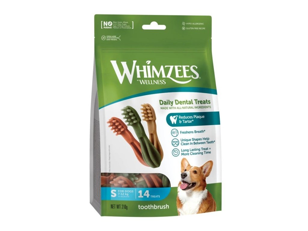 Dopřejte vašemu psovi oslnivý americký úsměv. Dentální pamlsek WHIMZEES bude vašeho psa bavit, napomáhá odstraňovat zubní plak, zabraňuje tvorbě zubního kamene, osvěžuje dech a pomáhá udržet zdravé dásně. Kartáček má jedinečné přírodní přísady, vysoký obsah vlákniny a nízký obsah kalorií a cukru. Nenajdete v něm žádné umělé přísady, konzervační látky nebo lepek. Pro psí tlamu je kartáček příjemný a váš mazlíček si proto čištění zubů snadno zamiluje a bude se na něj těšit.