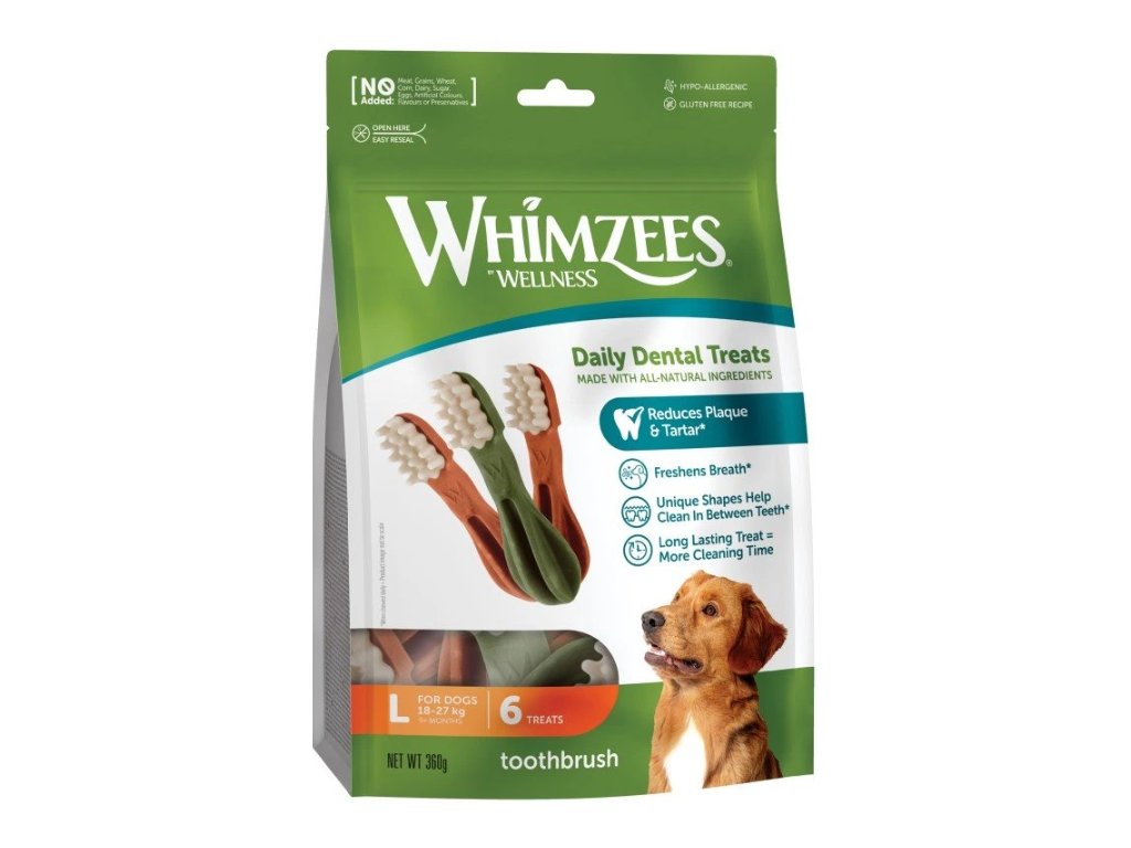 Dopřejte vašemu psovi oslnivý americký úsměv. Dentální pamlsek WHIMZEES bude vašeho psa bavit, napomáhá odstraňovat zubní plak, zabraňuje tvorbě zubního kamene, osvěžuje dech a pomáhá udržet zdravé dásně. Kartáček má jedinečné přírodní přísady, vysoký obsah vlákniny a nízký obsah kalorií a cukru. Nenajdete v něm žádné umělé přísady, konzervační látky nebo lepek. Pro psí tlamu je kartáček příjemný a váš mazlíček si proto čištění zubů snadno zamiluje a bude se na něj těšit.