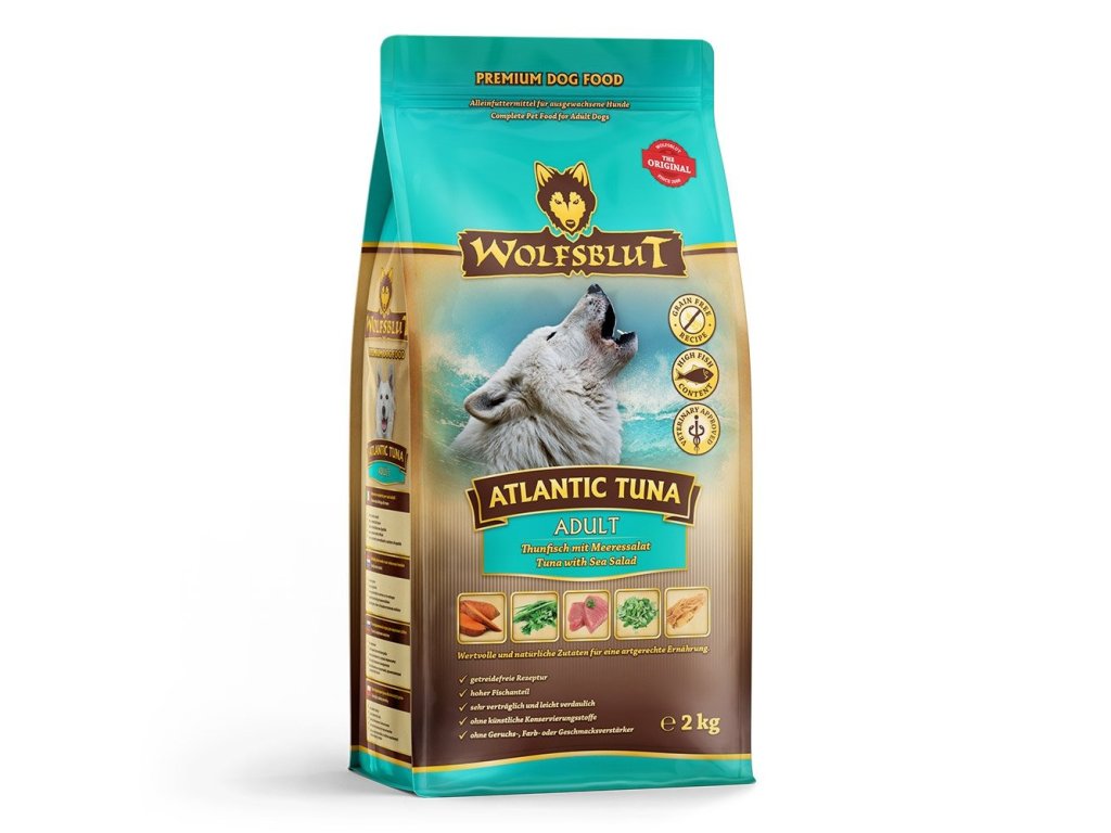 Vlci loví svou kořist od Skalistých hor Severní Ameriky, arktické tundry, hor, lesů a moří Evropy až po pouště a stepi Střední Asie. To jim dodává maso, ryby a vnitřnosti bohaté na živiny, ale také zeleninu, ovoce, bobule, kořeny a bylinky prostřednictvím obsahu žaludku kořisti. Obilí zde není zahrnuto. Vlk tak přijímá potřebné vitamíny, minerály, stopové prvky, enzymy a druhotné rostlinné látky. Vzhledem k tomu, že vlk je předkem všech psů, naše suché krmivo pro psy Wolfsblut je založeno na přirozených stravovacích návycích vlka. Obsahuje hodně masa nebo ryb v kombinaci se superpotravinami, které obsahují hodnotné ingredience – stejně jako v přírodě, bez obilovin. Náš výběr výjimečných druhů masa a superpotravin bohatých na živiny vychází z vlčích biotopů a jejich pestré stravy. Wolfsblut nabízí každému psovi druhově vhodnou a originální stravu a díky rozmanitosti odrůd si každý najde něco, co snese. Receptura na suché krmivo ATLANTIC TUNA kombinuje výživu vlků s nejnovějšími vědeckými poznatky o správné výživě psů.