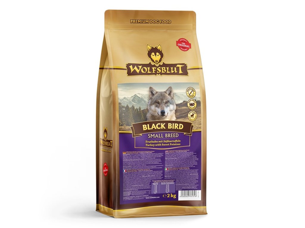 Vlci loví svou kořist od Skalistých hor Severní Ameriky, arktické tundry, hor a lesů Evropy až po pouště a stepi střední Asie. To jim dodává maso a vnitřnosti bohaté na živiny, ale také zeleninu, ovoce, bobule, kořeny a bylinky z obsahu žaludku kořisti. Obilí zde není zahrnuto. Vlk tak přijímá potřebné vitamíny, minerály, stopové prvky, enzymy a druhotné rostlinné látky. Vzhledem k tomu, že vlk je předkem všech psů, naše suché krmivo pro psy Wolfsblut je založeno na přirozených stravovacích návycích vlka. Obsahuje hodně masa nebo ryb v kombinaci se superpotravinami, které obsahují hodnotné ingredience – stejně jako v přírodě, bez obilovin. Náš výběr výjimečných druhů masa a superpotravin bohatých na živiny vychází z vlčích biotopů a jejich pestré stravy. Wolfsblut nabízí každému psovi druhově vhodnou a originální stravu a díky rozmanitosti odrůd si každý najde něco, co snese. Receptura suchého krmiva BLACK BIRD SMALL BREED kombinuje výživu vlků s nejnovějšími vědeckými poznatky o správné výživě psů.