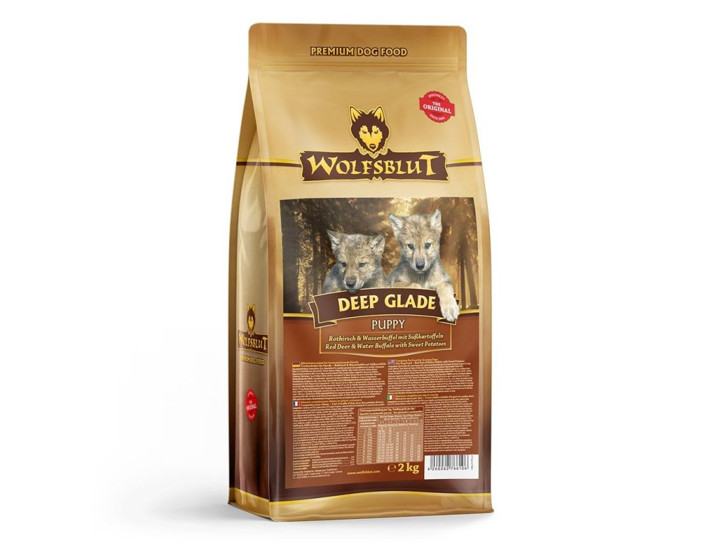 Vlci loví svou kořist od Skalistých hor Severní Ameriky, arktické tundry, hor a lesů Evropy až po pouště a stepi střední Asie. To jim dodává maso a vnitřnosti bohaté na živiny, ale také zeleninu, ovoce, bobule, kořeny a bylinky z obsahu žaludku kořisti. Obilí zde není zahrnuto. Vlk tak přijímá potřebné vitamíny, minerály, stopové prvky, enzymy a druhotné rostlinné látky. Vzhledem k tomu, že vlk je předkem všech psů, naše suché krmivo pro psy Wolfsblut je založeno na přirozených stravovacích návycích vlka. Obsahuje hodně masa nebo ryb v kombinaci se superpotravinami, které obsahují hodnotné ingredience – stejně jako v přírodě, bez obilovin. Náš výběr výjimečných druhů masa a superpotravin bohatých na živiny vychází z vlčích biotopů a jejich pestré stravy. Wolfsblut nabízí každému psovi druhově vhodnou a originální stravu a díky rozmanitosti odrůd si každý najde něco, co snese. Receptura suchého krmiva DEEP GLADE PUPPY kombinuje výživu vlků s nejnovějšími vědeckými poznatky o správné výživě psů.