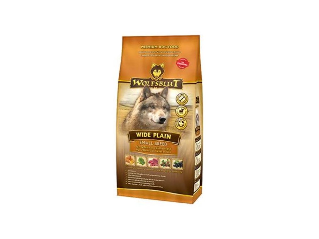 Vlci loví svou kořist od Skalistých hor Severní Ameriky, arktické tundry, hor a lesů Evropy až po pouště a stepi střední Asie. To jim dodává maso a vnitřnosti bohaté na živiny, ale také zeleninu, ovoce, bobule, kořeny a bylinky z obsahu žaludku kořisti. Obilí zde není zahrnuto. Vlk tak přijímá potřebné vitamíny, minerály, stopové prvky, enzymy a druhotné rostlinné látky. Vzhledem k tomu, že vlk je předkem všech psů, naše suché krmivo pro psy Wolfsblut je založeno na přirozených stravovacích návycích vlka. Obsahuje hodně masa v kombinaci se superpotravinami, které obsahují hodnotné ingredience – stejně jako v přírodě, bez obilovin. Náš výběr výjimečných druhů masa a superpotravin bohatých na živiny vychází z vlčích biotopů a jejich pestré stravy. Wolfsblut nabízí každému psovi druhově vhodnou a originální stravu a díky rozmanitosti odrůd si každý najde něco, co snese. Receptura suchého krmiva WIDE PLAIN SMALL BREED kombinuje výživu vlků s nejnovějšími vědeckými poznatky o správné výživě psů.