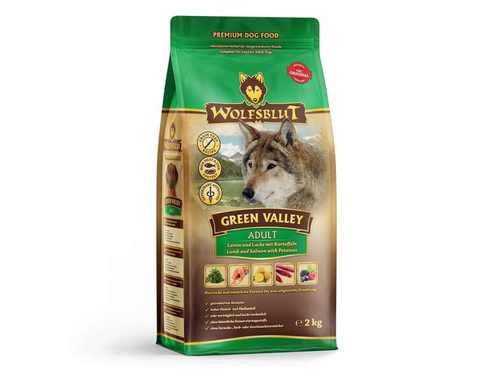 Vlci loví svou kořist od Skalistých hor Severní Ameriky, arktické tundry, hor a lesů Evropy až po pouště a stepi střední Asie. To jim dodává maso a vnitřnosti bohaté na živiny, ale také zeleninu, ovoce, bobule, kořeny a bylinky z obsahu žaludku kořisti. Obilí zde není zahrnuto. Vlk tak přijímá potřebné vitamíny, minerály, stopové prvky, enzymy a druhotné rostlinné látky. Vzhledem k tomu, že vlk je předkem všech psů, naše suché krmivo pro psy Wolfsblut je založeno na přirozených stravovacích návycích vlka. Obsahuje hodně masa nebo ryb v kombinaci se superpotravinami, které obsahují hodnotné ingredience – stejně jako v přírodě, bez obilovin. Náš výběr výjimečných druhů masa a superpotravin bohatých na živiny vychází z vlčích biotopů a jejich pestré stravy. Wolfsblut nabízí každému psovi druhově vhodnou a originální stravu a díky rozmanitosti odrůd si každý najde něco, co snese. Receptura suchého krmiva GREEN VALLEY kombinuje výživu vlků s nejnovějšími vědeckými poznatky o správné výživě psů.