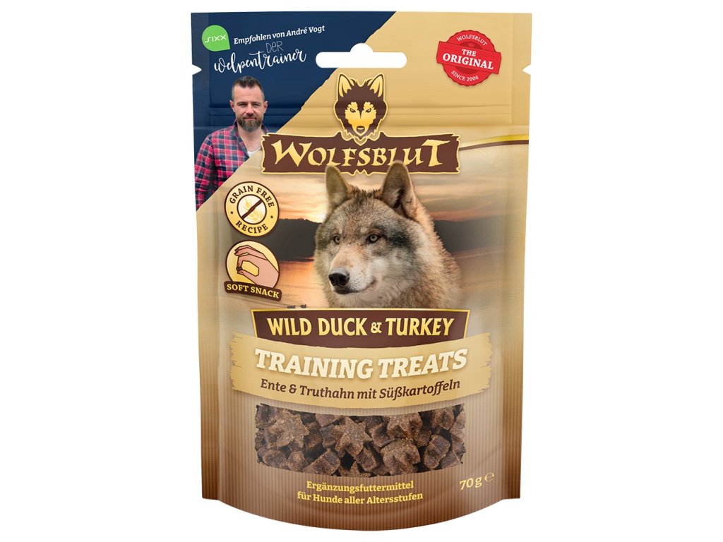 Měli jsme skvělou příležitost popovídat si s psím profesionálem André Vogtem, známým "The Puppy Trainer", o dokonalé svačině a její kombinaci s naším výživovým konceptem: Hodnotné a přírodní suroviny se spoustou masa a receptura bez obilovin. pro dobrou snášenlivost Společně s André Vogtem jsme vyvinuli něco velmi speciálního - Wolfsblut Training Treats Wild Duck & Turkey - speciálně pro výcvik psů všech věkových kategorií Měkká konzistence a velikost svačiny jsou zvláště vhodné pro mnoho tréninkových účelů. - bez způsobení dlouhého žvýkání.