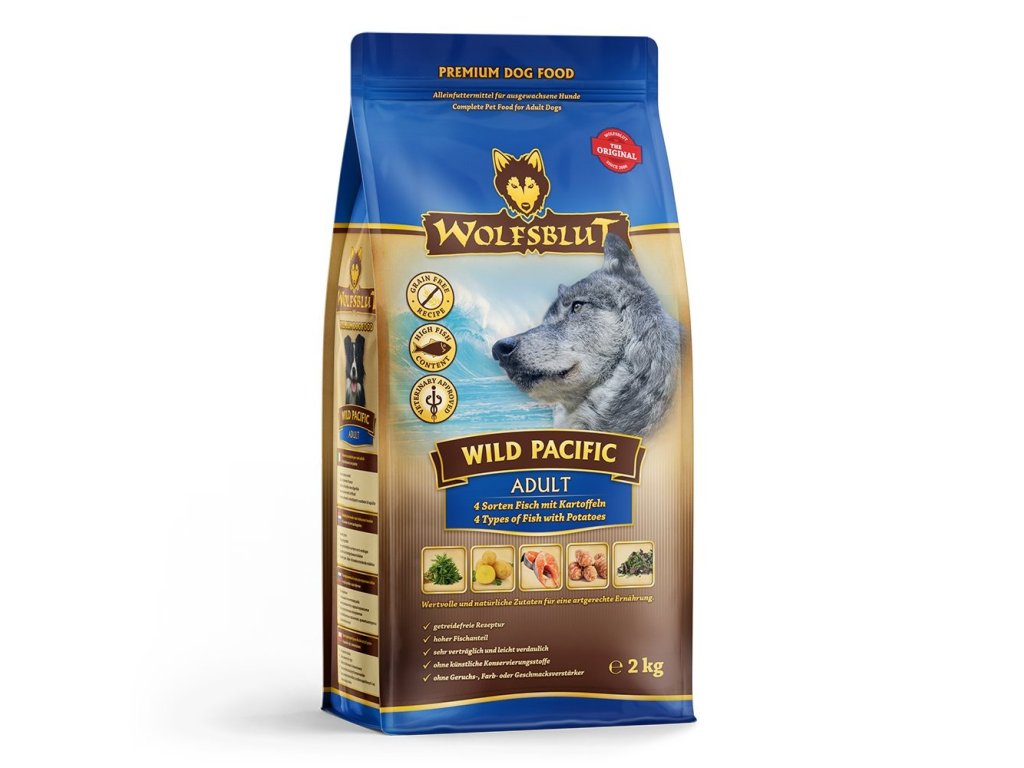 Jednotlivé složky potravy WILD PACIFIC byly sestaveny společně s veterináři tak, aby vyhovovaly přirozenému chování vlka kořisti a poznatkům o holistické výživě psů. Suché krmivo Wolfsblut je proto jedinečné.