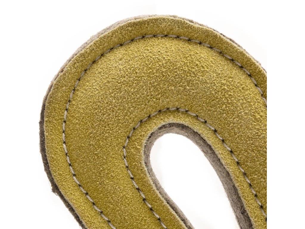 Hračka je precizně prošita nití, která zpevňuje všechny spoje a prodlužuje její životnost i při intenzivním žvýkání a tahání. K zubům a dásním psa je šetrná, neodírá je a odolává opakovanému kousání, zatímco její přirozená vůně kůže připomíná pach kořisti, který vzbuzuje ve psovi lovecké instinkty a vyvolává touhu kousat, žvýkat a lovit.