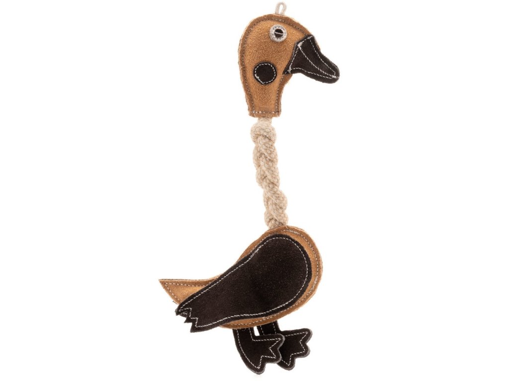 Wooffee pravá kůže kachna s provazem 26 cm