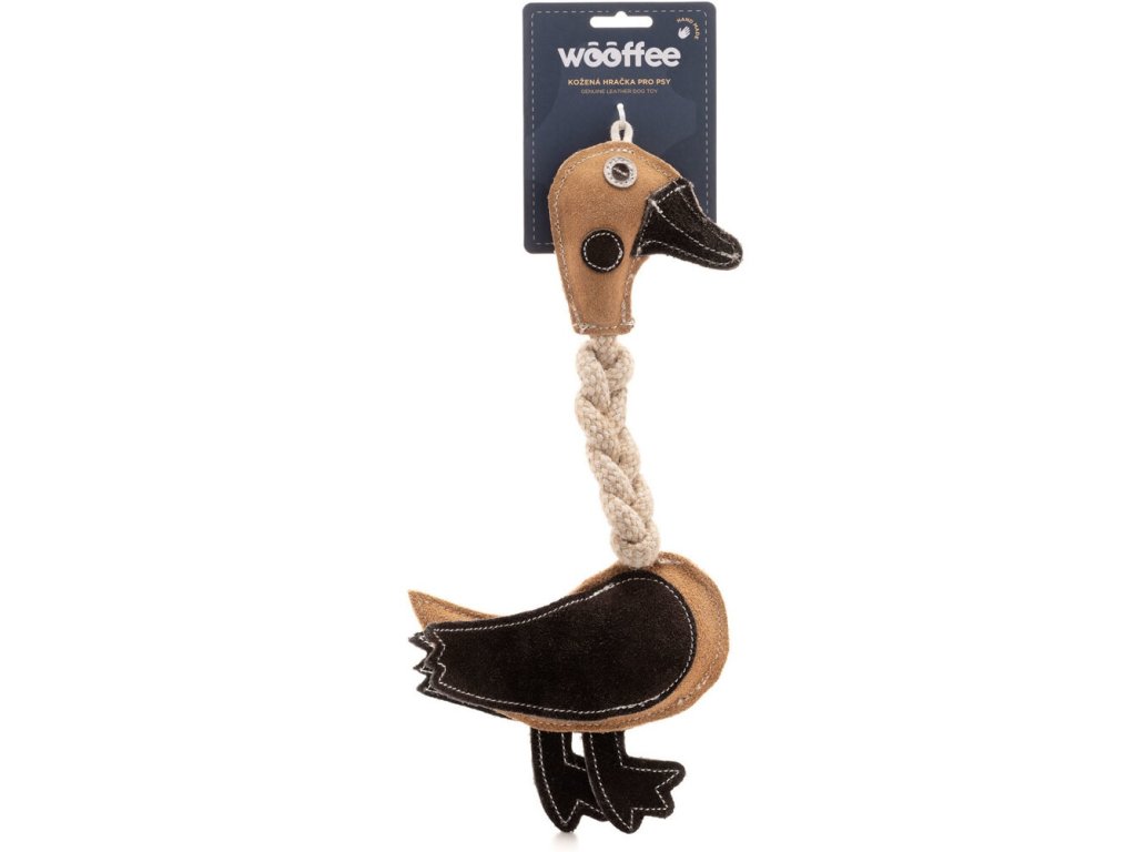Wooffee kachna je vyrobena z kombinace přírodních materiálů, které jsou šetrné k zubům a dásním psa a odolávají opakovanému kousání. Tělo je z buvolí kůže s výplní z kokosových vláken a je prošito nití. Nohy jsou z jutového provazu s příměsí bavlny, který je ideální pro kousání i přetahování.