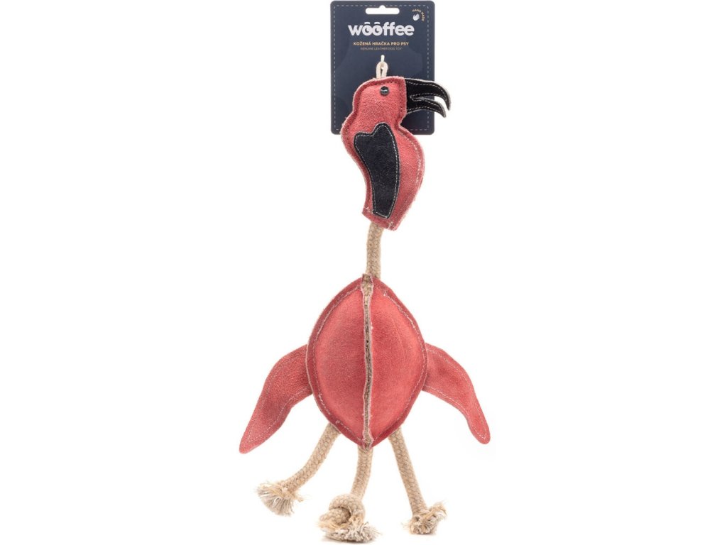 Wooffee plameňák je vyroben z kombinace přírodních materiálů, které jsou šetrné k zubům a dásním psa a odolávají opakovanému kousání. Tělo je z buvolí kůže s výplní z kokosových vláken a je prošito nití. Nohy jsou z jutového provazu s příměsí bavlny, který je ideální pro kousání i přetahování.