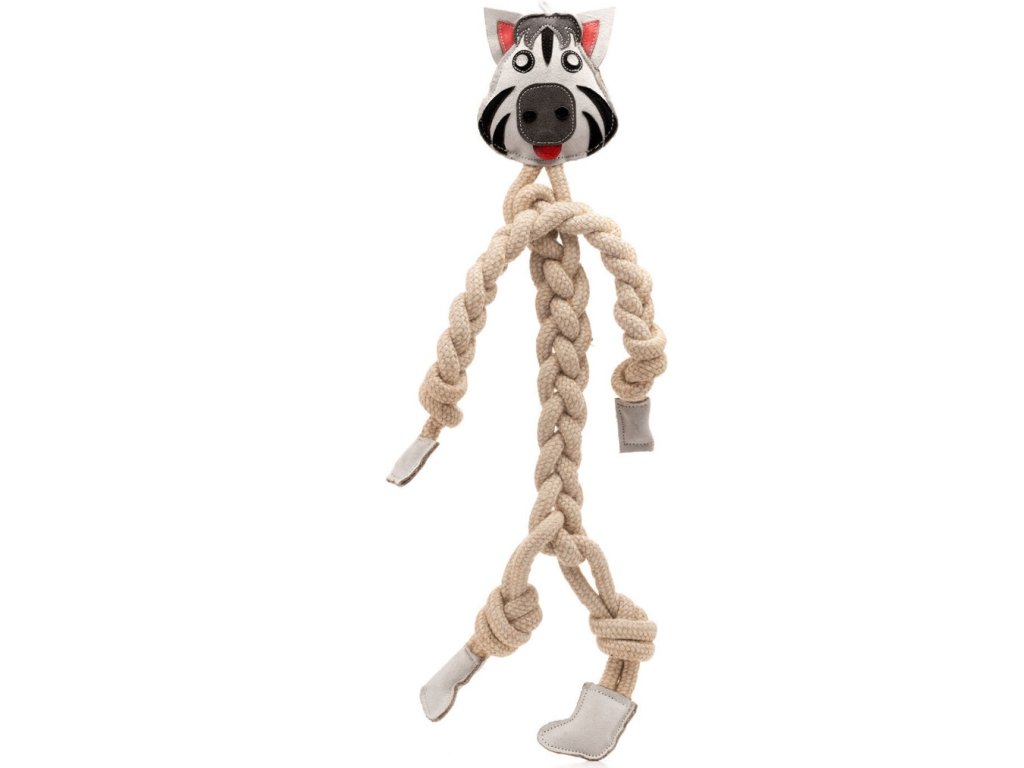 Hračka s extra dlouhým provazovým tělem je vyrobena z kombinace přírodních materiálů, díky čemuž je ideální na přetahování i kousání.