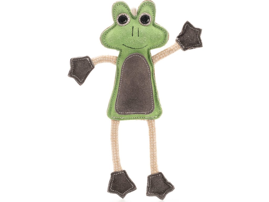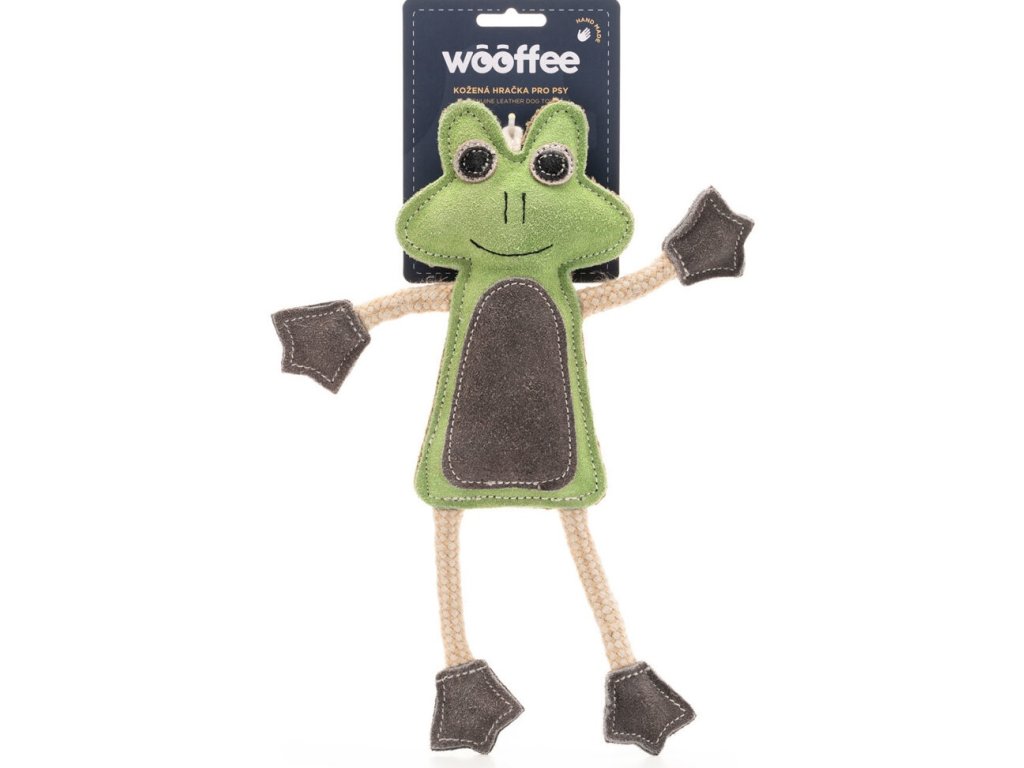 Wooffee žabička je vyrobena z kombinace přírodních materiálů, které jsou šetrné k zubům a dásním psa a odolávají opakovanému kousání. Tělo je z buvolí kůže s výplní z kokosových vláken a je prošito nití. Nohy a ruce jsou z jutového provazu s příměsí bavlny, který je ideální pro kousání i přetahování.