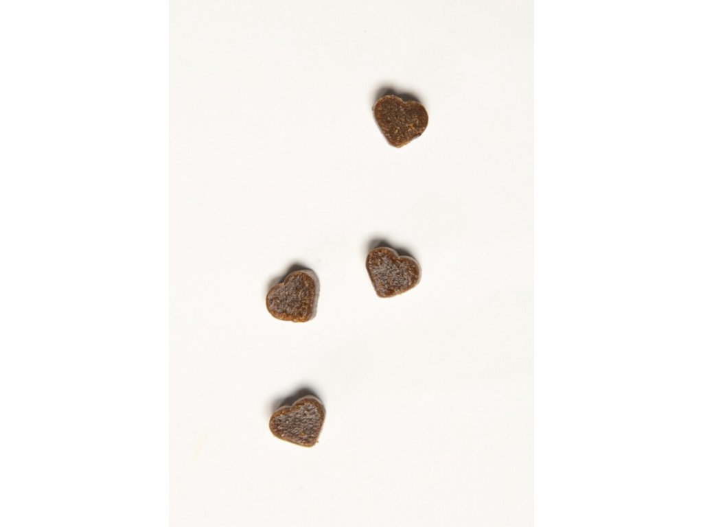 Měkké pamlsky ve tvaru srdíček, vyrobené z přírodních čerstvých surovin, které nejen skvěle chutnají, ale také prospívají zdraví vašeho psa.