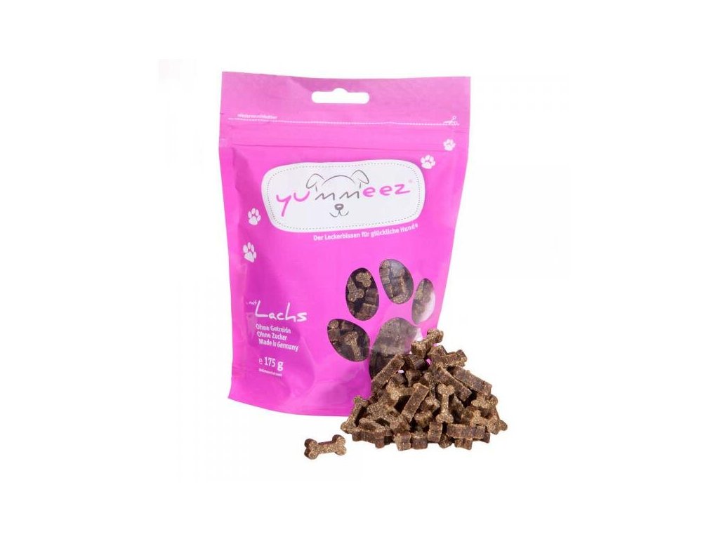 Poloměkké šťavnaté kostičky pro psy. Ideální při výcviku nebo jako chutná malá odměna.Yummeez neobsahují obiloviny, takže jsou vhodné i pro alergické psy. Kromě vysokého podílu masa obsahují také brambory, tapiocu (maniok jedlý) a zdravou vojtěšku.Sáček lze znovu uzavřít a pamlsky tak vydrží déle čerstvé.Yummeez jsou vyrobené v Německu.Složení: rostlinné vedlejší produkty (12% brambory, 6% tapioca, 4% vojtěška), maso a živočišné vedlejší produkty, rybí maso a vedlejší rybí produkty (4% losos)Analýza: hrubé bílkoviny 28,0 %, hrubé oleje a tuky 5,0 %, hrubá vláknina 5,0 %, hrubé popeloviny 4,0 %, vlhkost 25,0 %