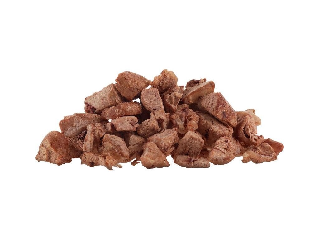 Na výrobu jednoho mrazem sušeného pamlsku je potřeba pětinásobné množství čerstvého masa.