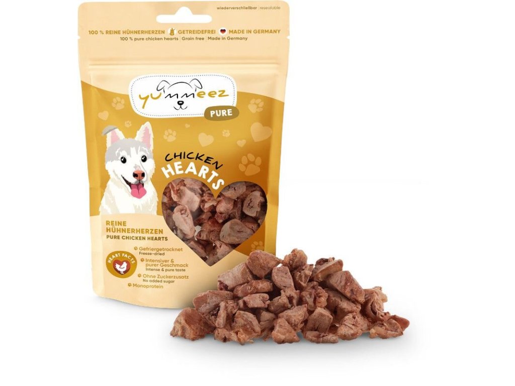 Yummeez Pure Hühnerherzen – mrazem sušená kuřecí srdíčka 35g