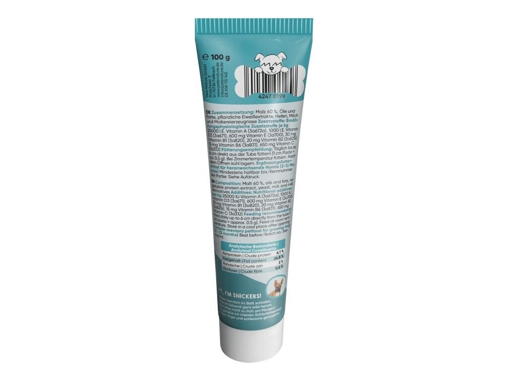 Tento krémový pamlsek je dokonalou odměnou pro vaše štěňátko – potěší ho svou lahodnou chutí a vůní a zároveň mu poskytne vitamíny potřebné pro zdravý růst a správný vývoj.