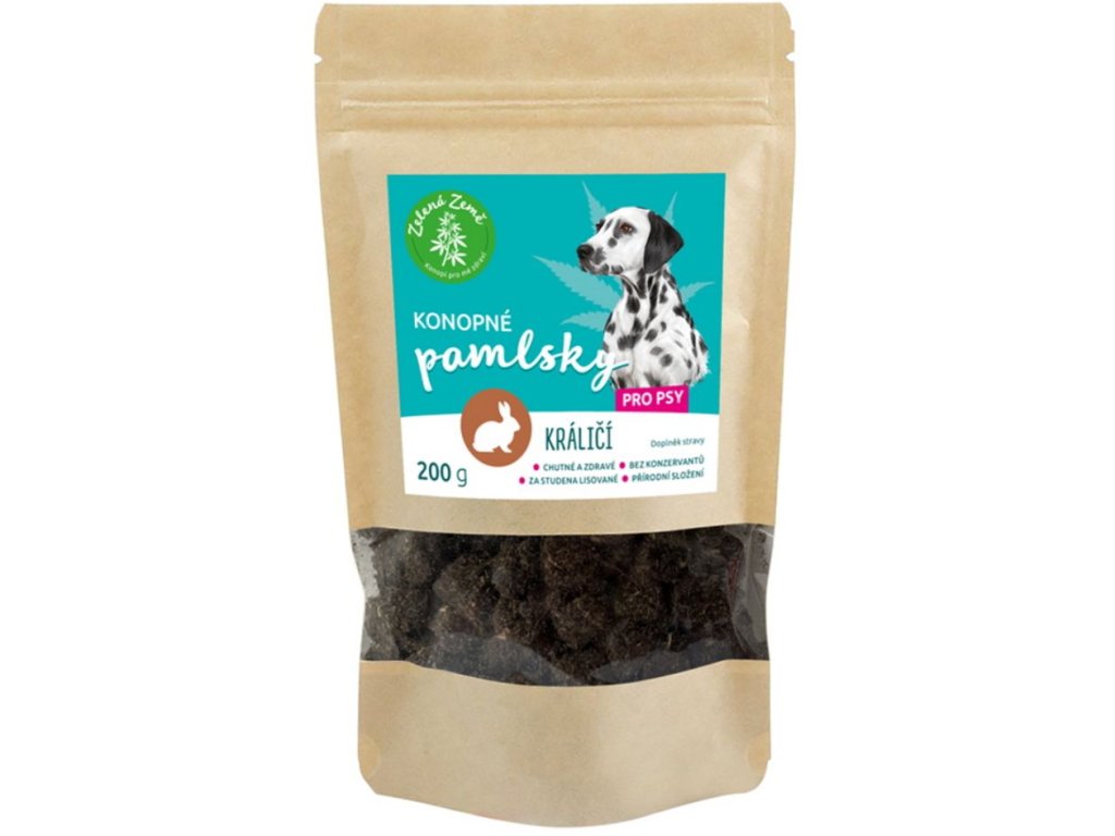 Zelená Země Konopný pamlsek pro psy králičí 200g